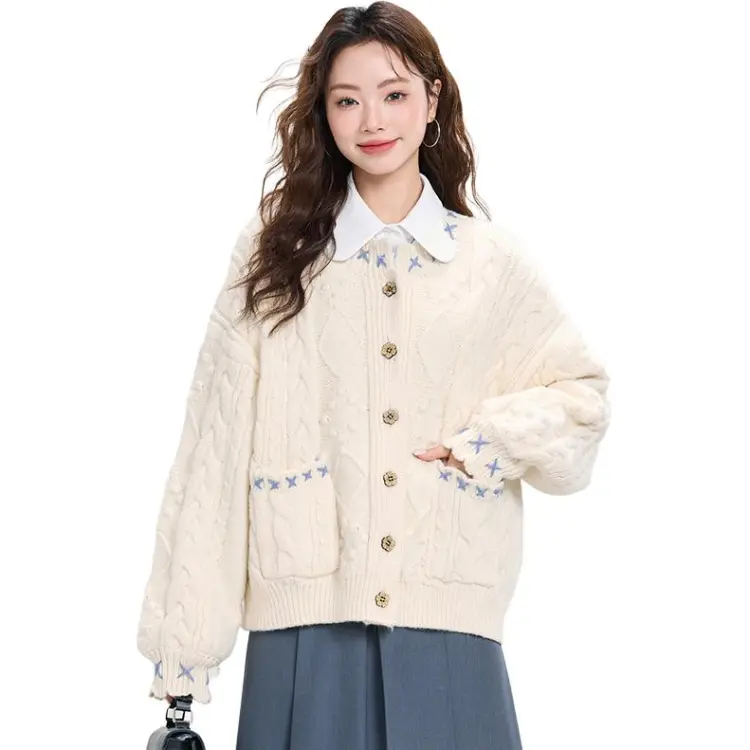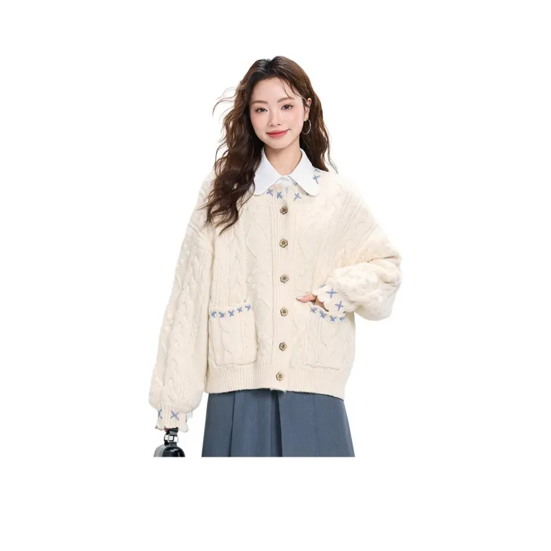 MENGXIAOQI Молочный Белый Свитер Кардиган Женские Трикотаж