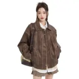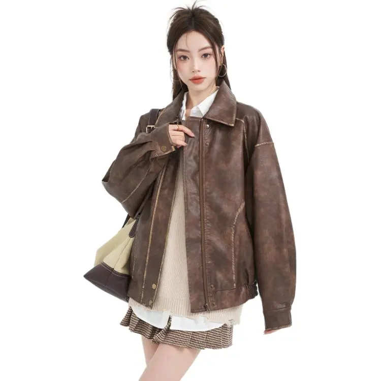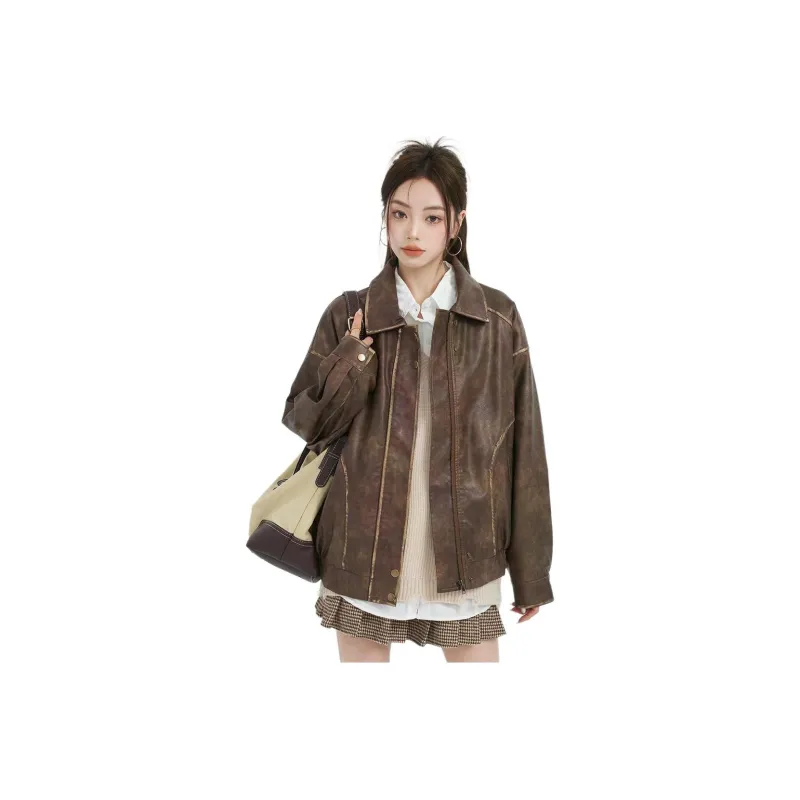 MENGXIAOQI Кожа Куртка Женская