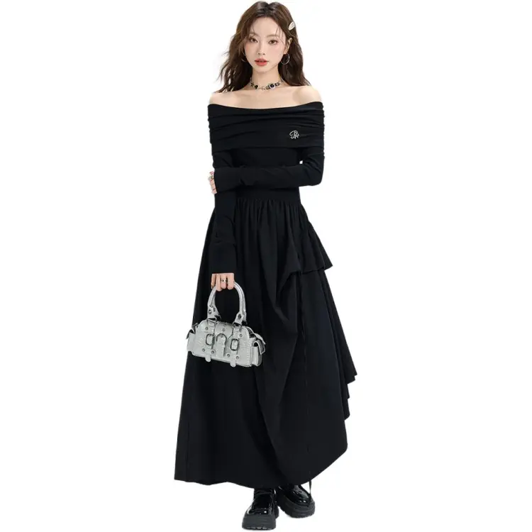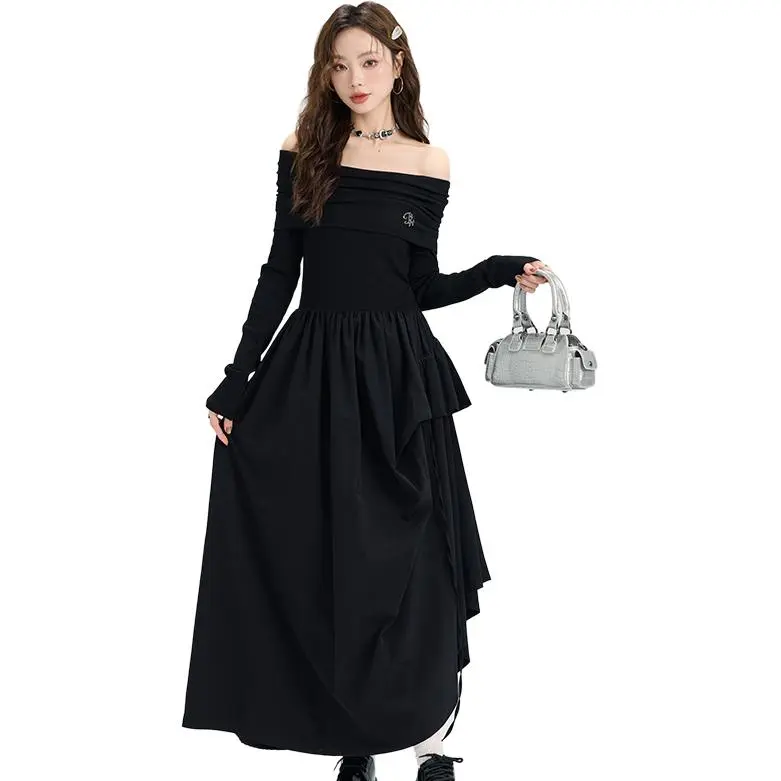 MENGXIAOQI Длинное платье с длинным рукавом женское
