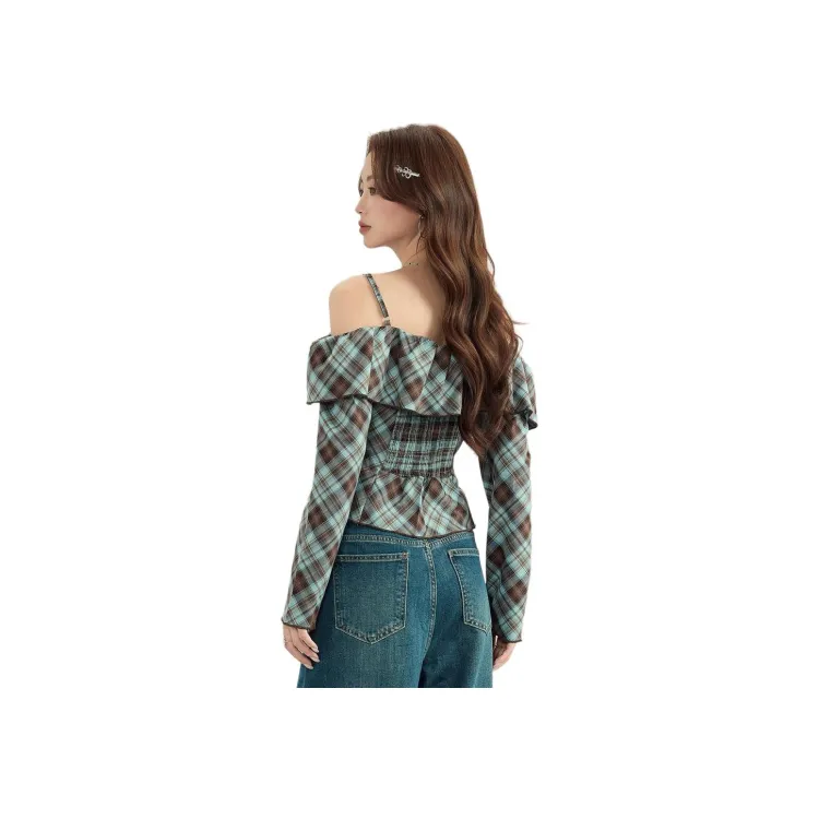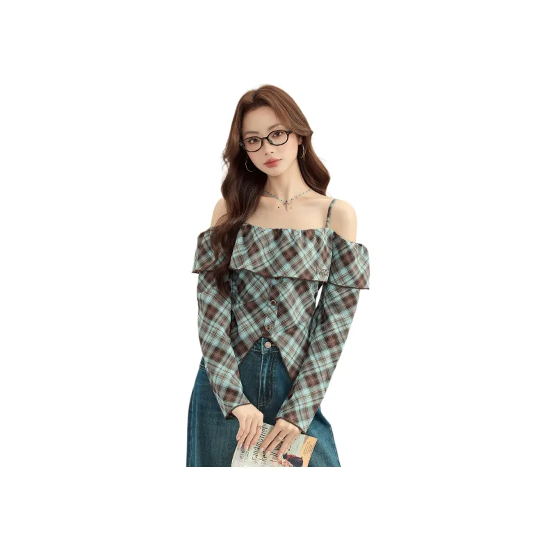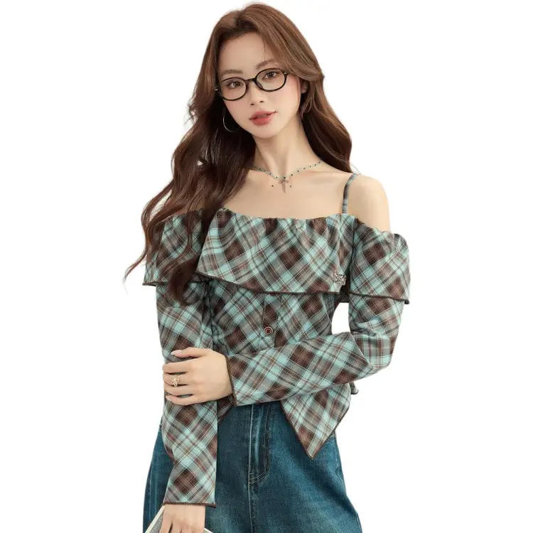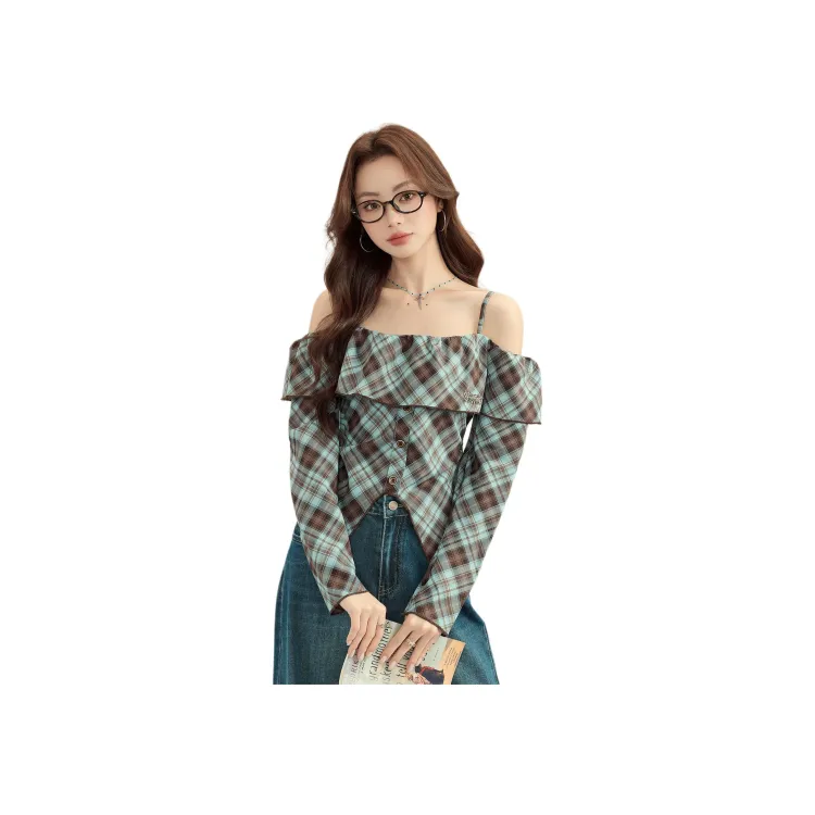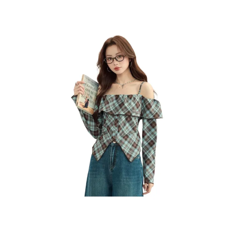 MENGXIAOQI Синий Топ Женские Рубашки