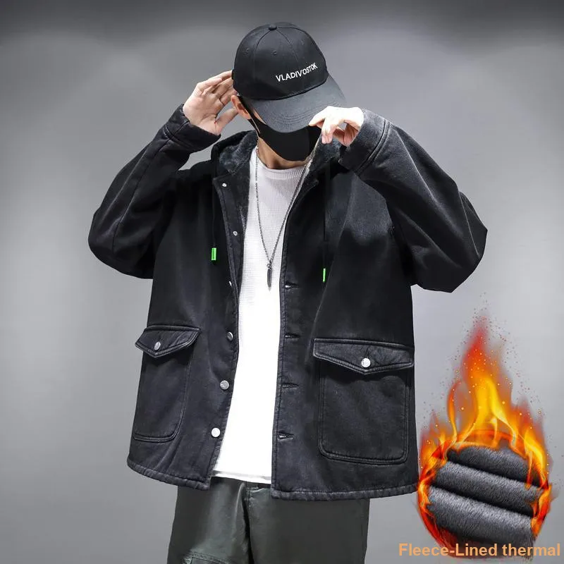 MENING Черный флис с подкладкой унисекс куртки