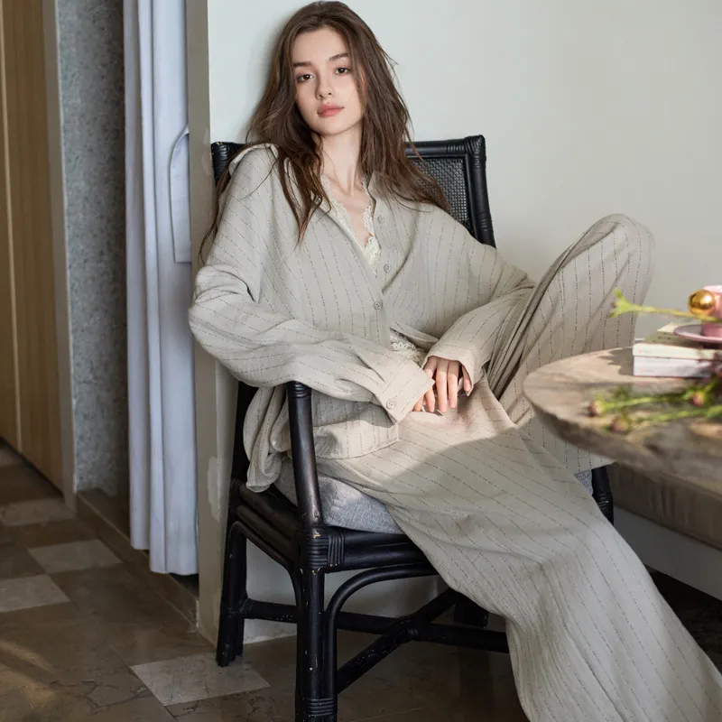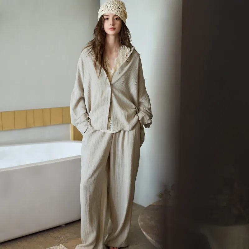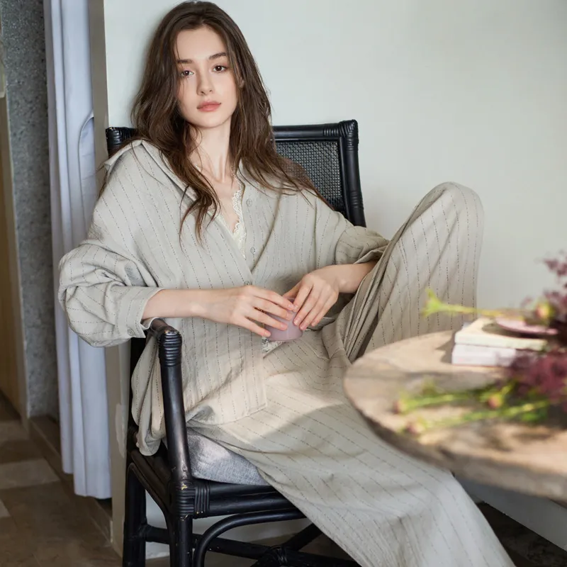 MEONSILL Весенний и Осенний комплект пижам для женщин 2 предмета хаки