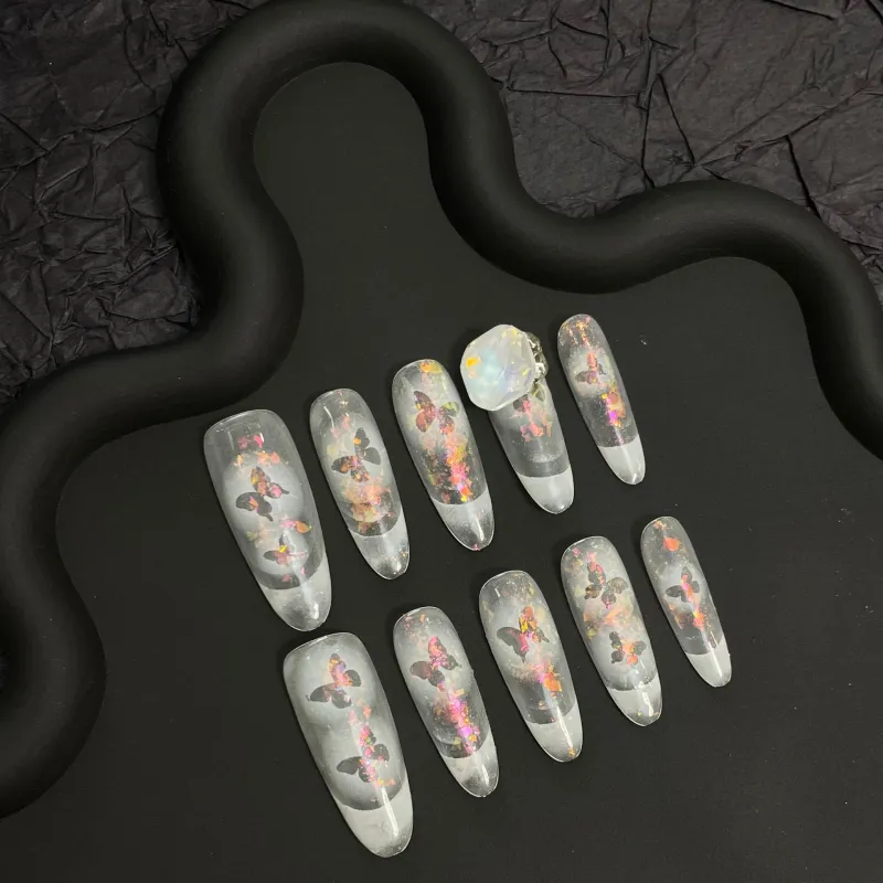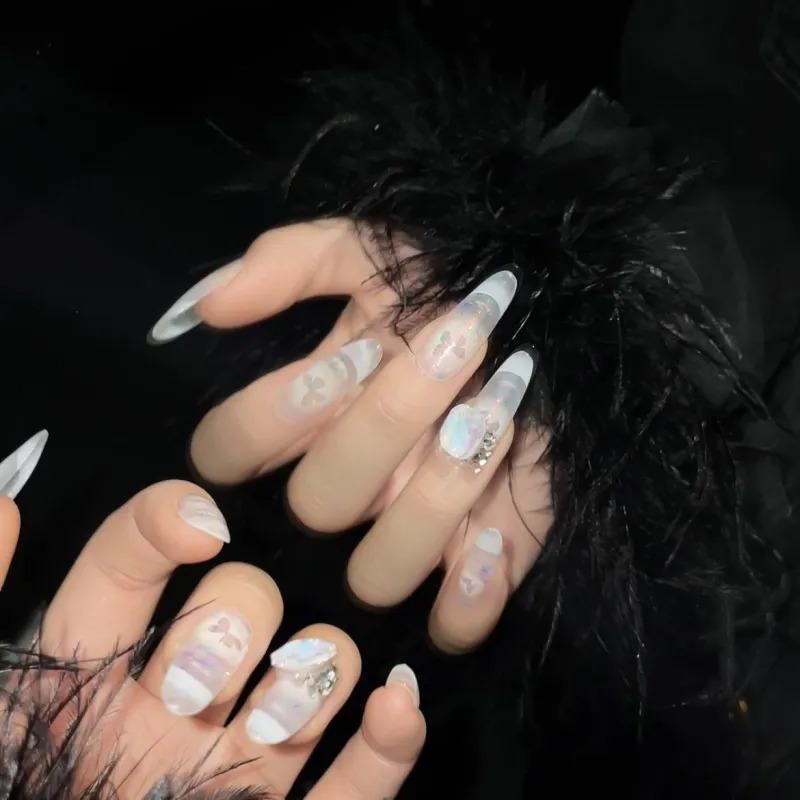 Meow Man A PURE Ручная работа Овал MID Длина (размер в длину) Искрящийся Вспышка National Стиль Coquette Стиль Instagram Градиентный 25 мм