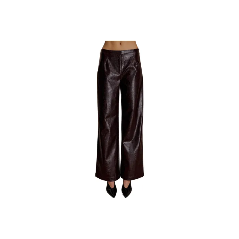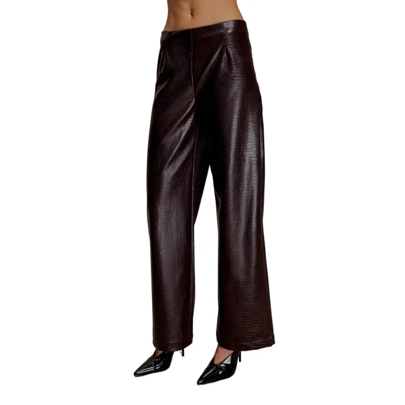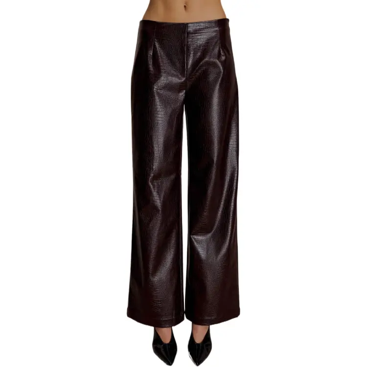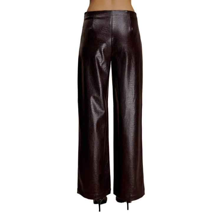 Meshki Croc Искусственная кожа Straight Нога Брюки Повседневные брюки Женские