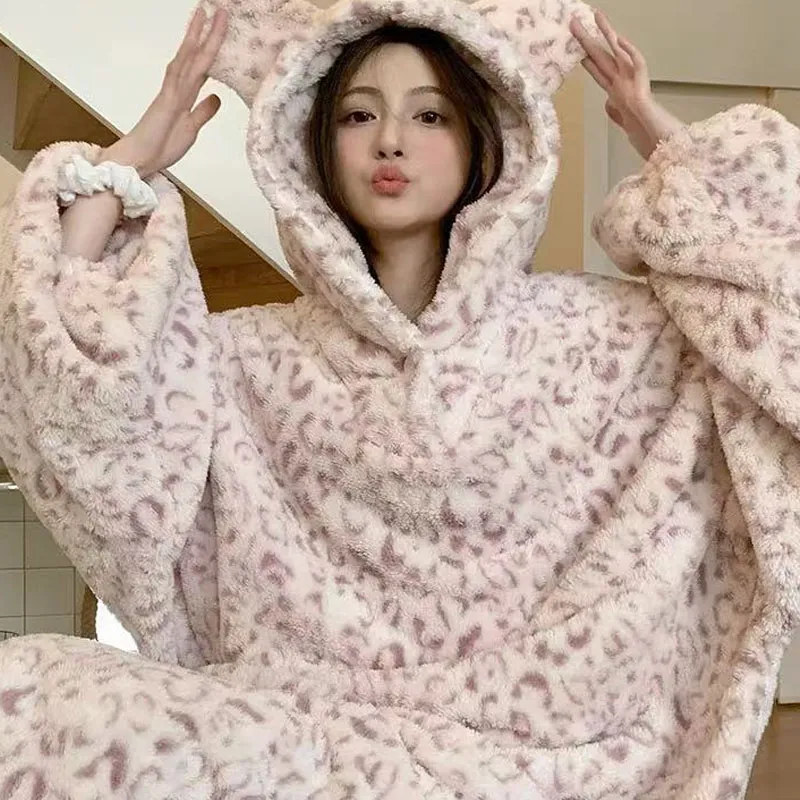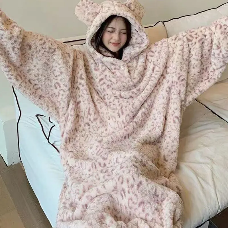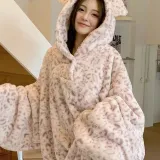 METE WHALE MT Sleep Халат Женские Леопард с принтом Розовый