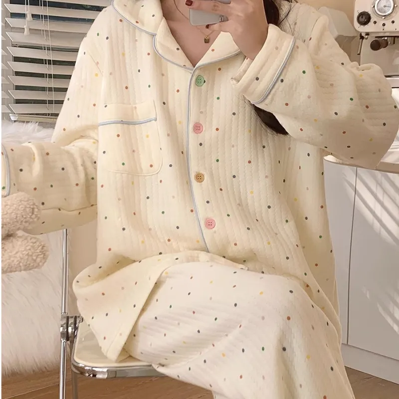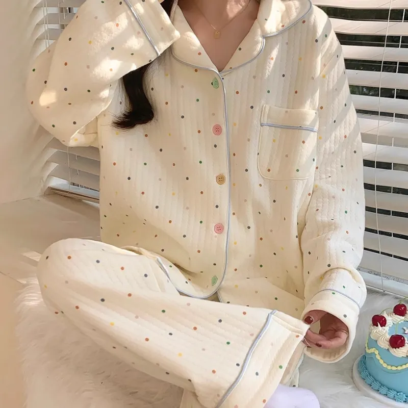 METE WHALE MT Пижамный комплект Женские Молочный Белый Точка