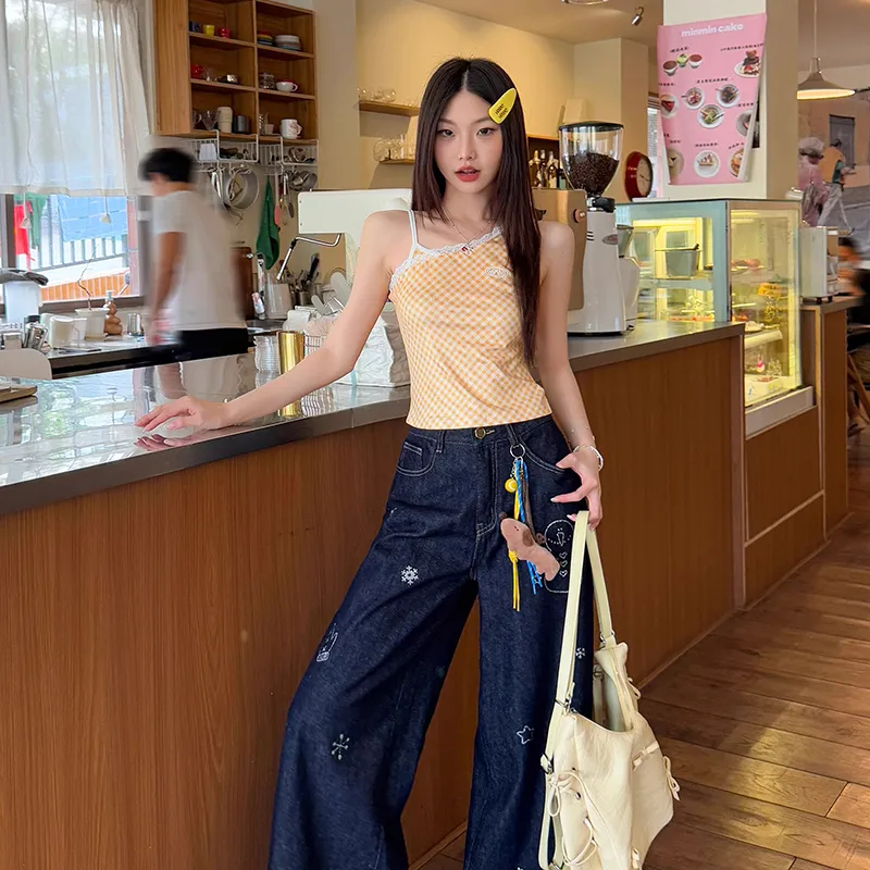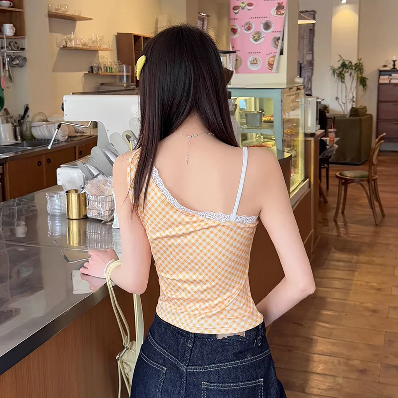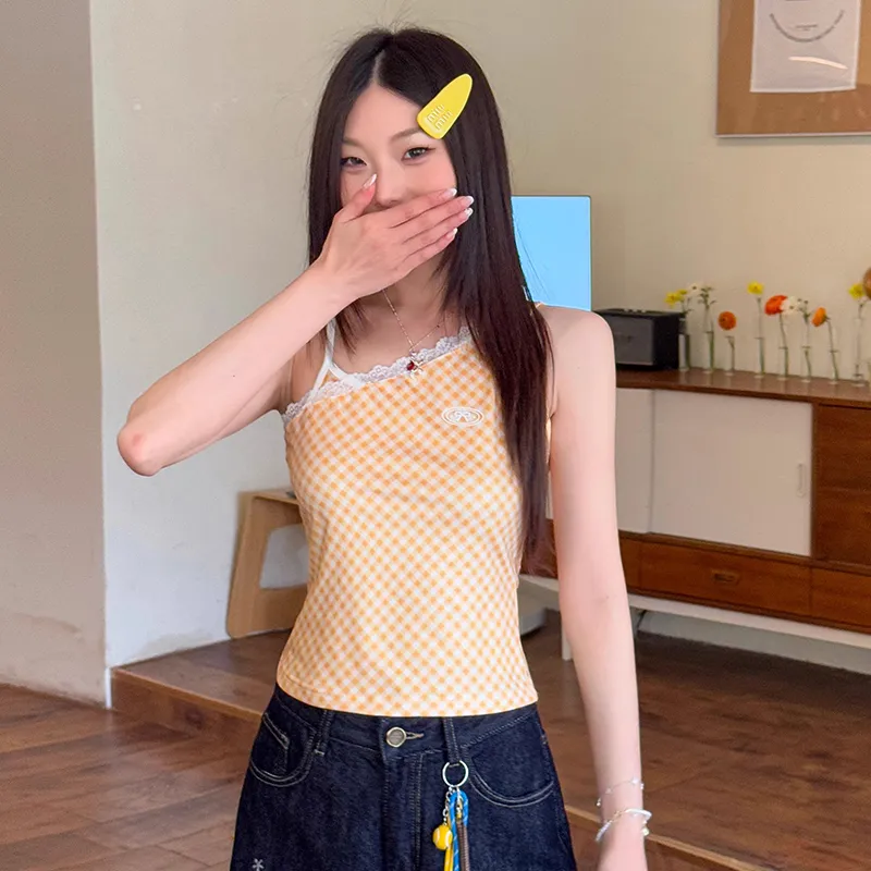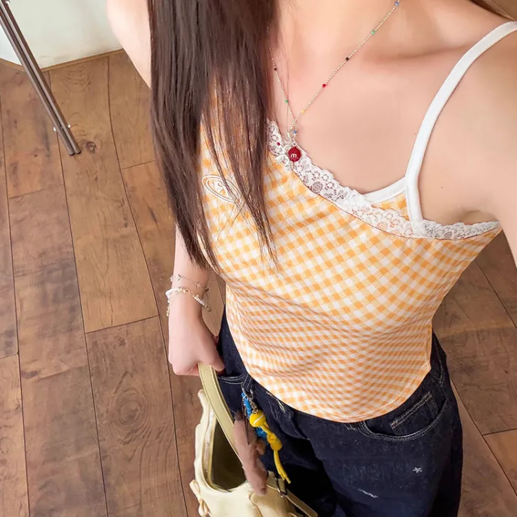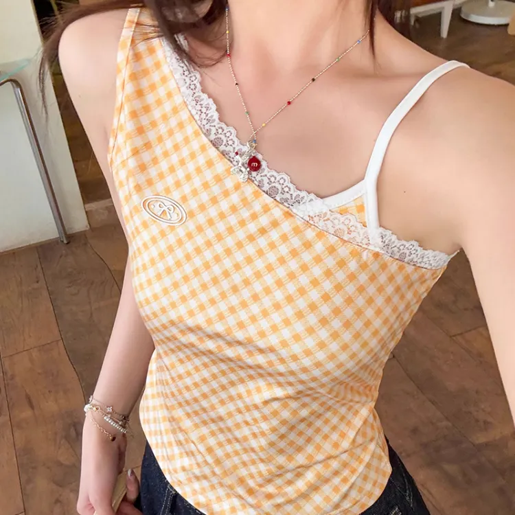 METE WHALE MT Имбирно-желтый Клетчатый Белый Женские Майки