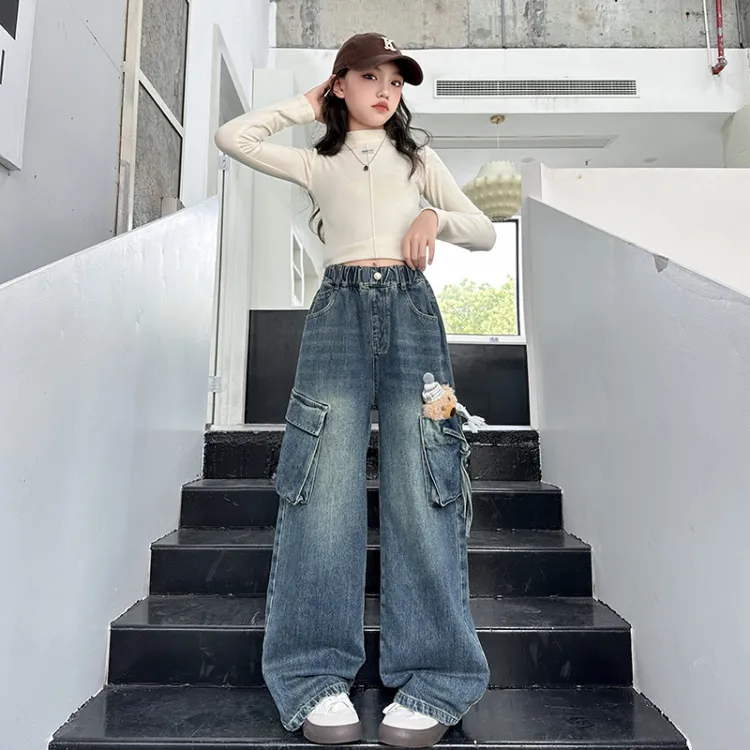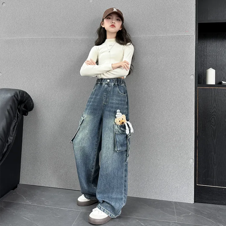 Meter Джинсы Осенний Зимний Комплект Повседневные Брюки Прямой крой