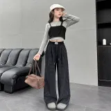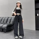 Meter Джинсы Осенние и Зимние Винтаж Гонконгский Шик Lazy Свободный крой Вертикальный Повседневные Штаны