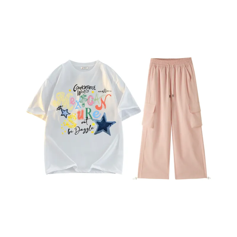 Комплект:Комплект одежды (Белый топ + Розовые штаны)