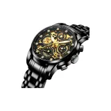Черный ремешок, золотой циферблат, твердый стальной браслет