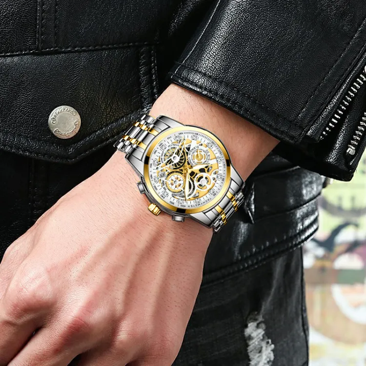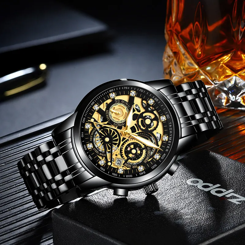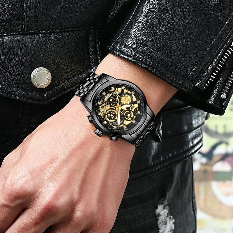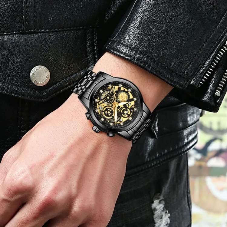 Ремешок Цвет:Черный ремешок, золотой циферблат, твердый стальной браслет