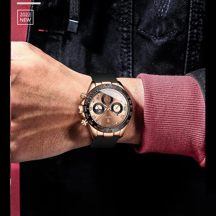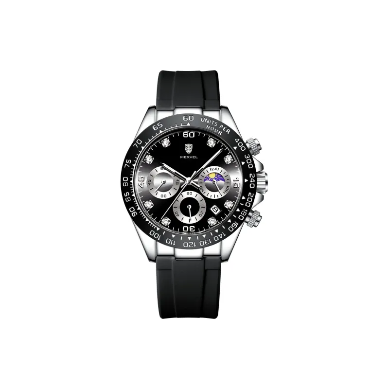 MEXVEL Спортивные водонепроницаемые светящиеся в темноте хронограф с календарем кварцевый механизм силиконовый ремешок