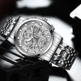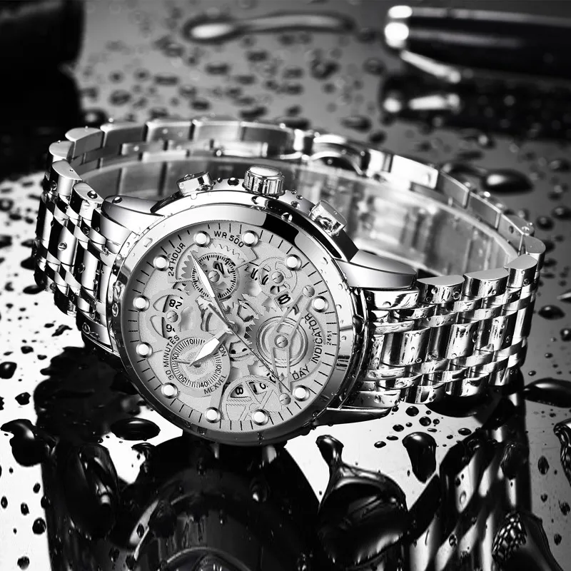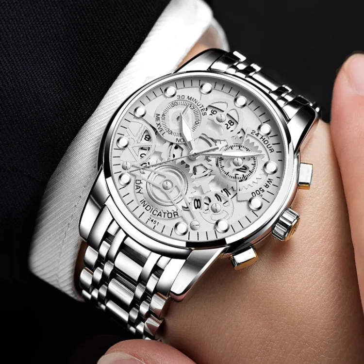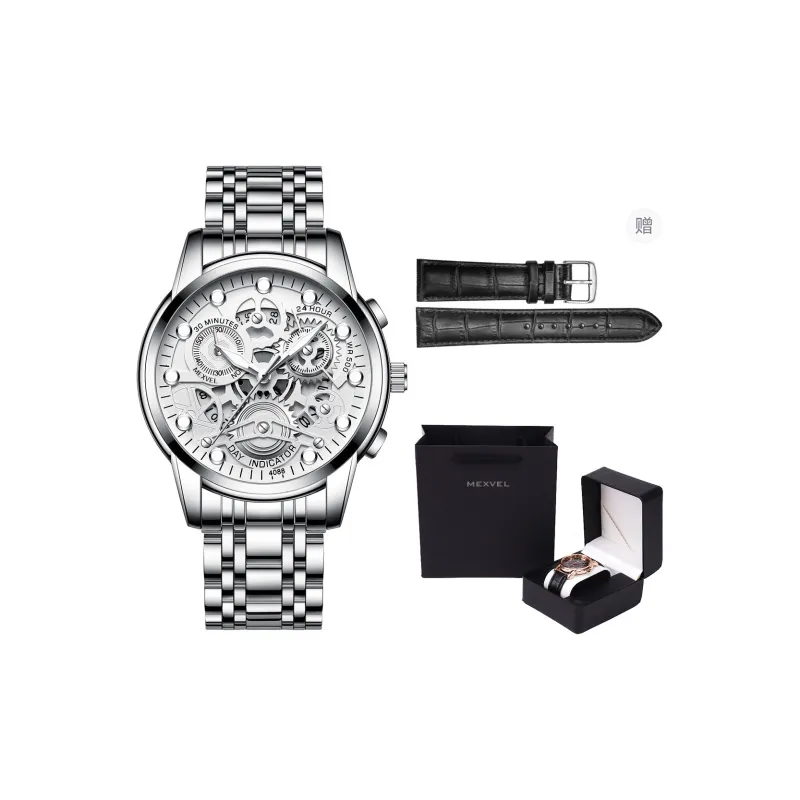 Циферблат Цвет:Три руки Стиль - Серебряный ремешок - Белый циферблат [Коробка для ремня]