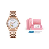 Комплект:Розовый корпус с белым циферблатом, розовый стальной браслет + коробка + браслет + ремешок