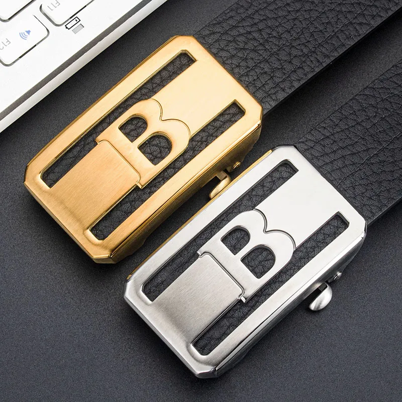Стиль:Золотой B пряжка + морская текстура, нет зубцов, черный ремешок