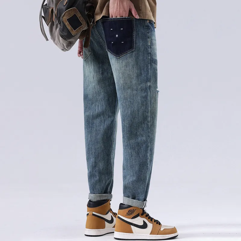 MH Зеленый синий Мужские Джинсы