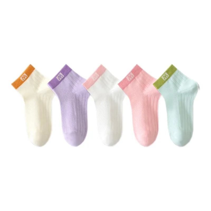 [Теплый Светло-белый + Таро Фиолетовый + Мечтательный Белый + Девичий Розовый + Лаймово-зеленый] Носки Crew (2502)