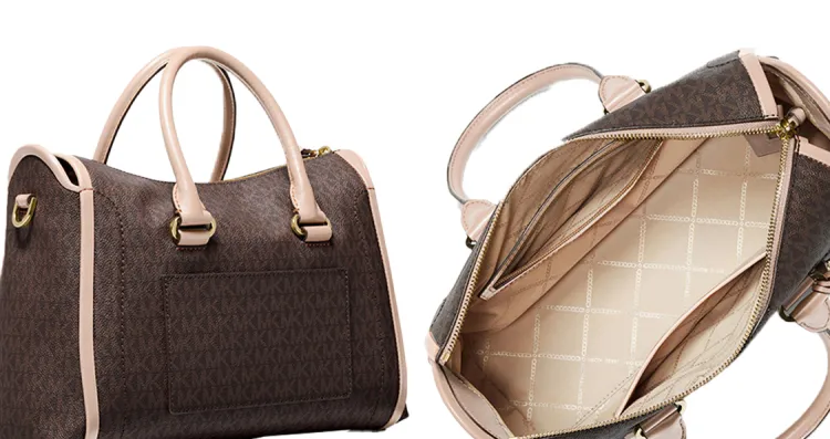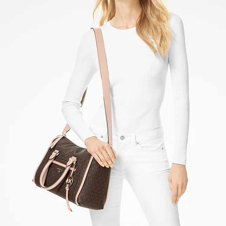 MICHAEL KORS Carine Коровья кожа Сумка через плечо Сумка среднего размера Женская Темно-коричневый Нежно-розовый