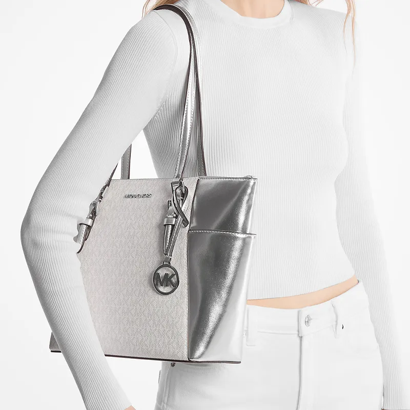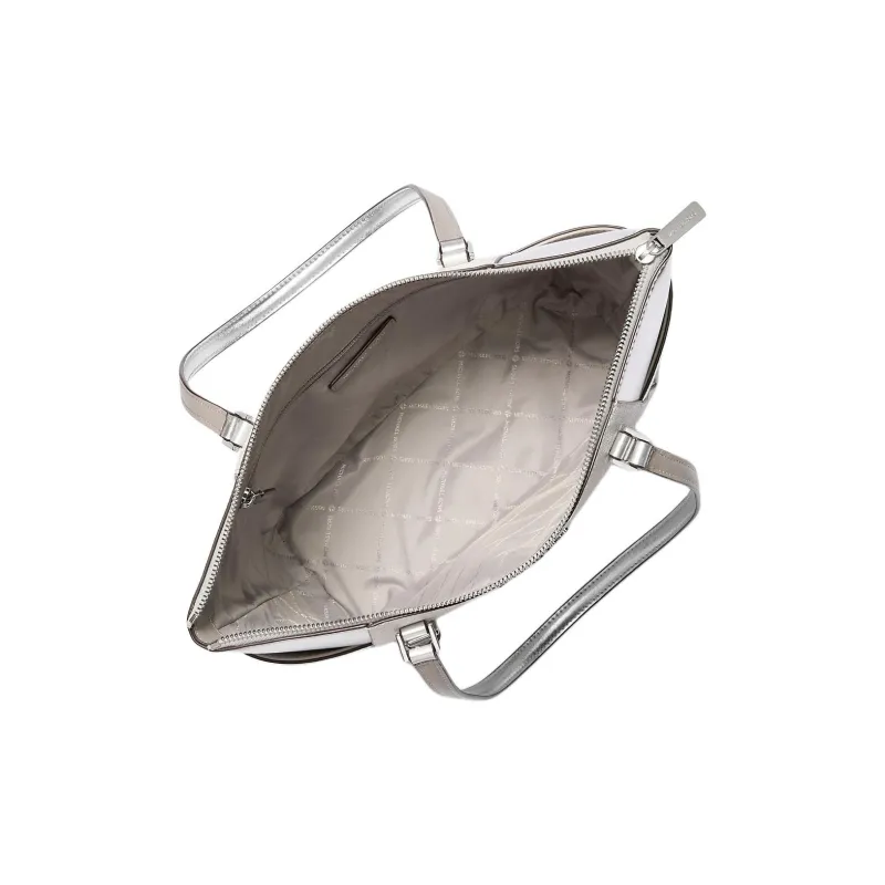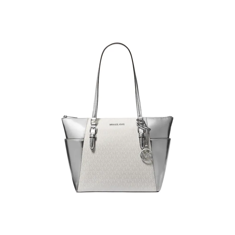 MICHAEL KORS CHARLOTTE Покрытый холст Тоут Сумка Сумка для покупок Сумка на плечо Большая Женская Серебряный