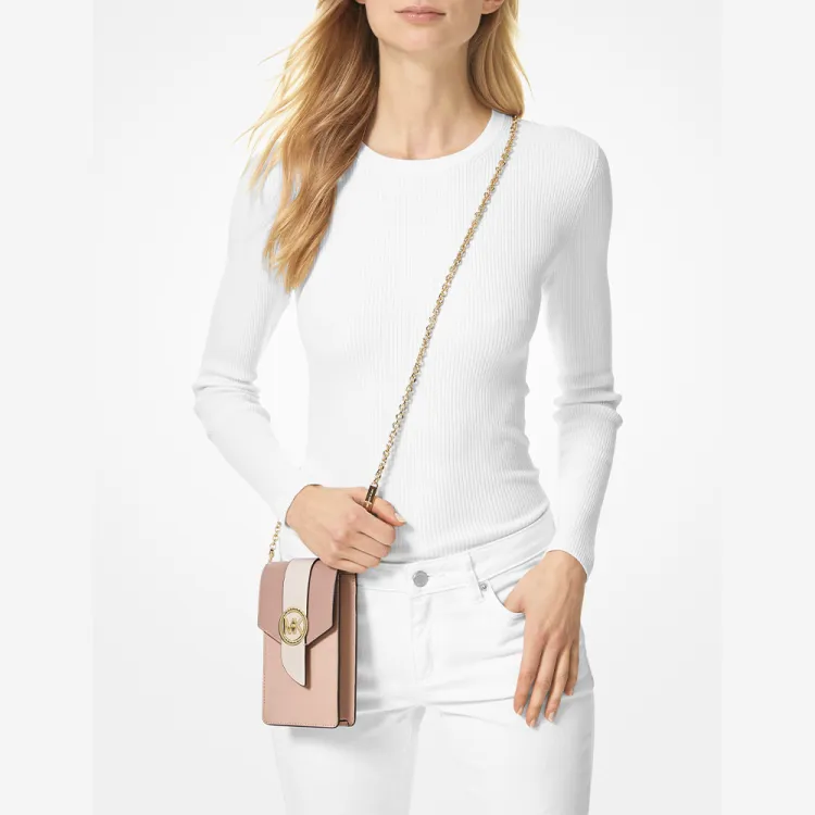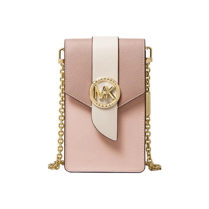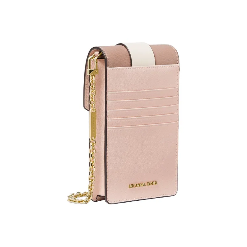 MICHAEL KORS Украшение Коровья кожа Чехол для телефона Сумка через плечо Маленький Женские Нежно-розовый Светлый Milky Белый Пыльно-розовый