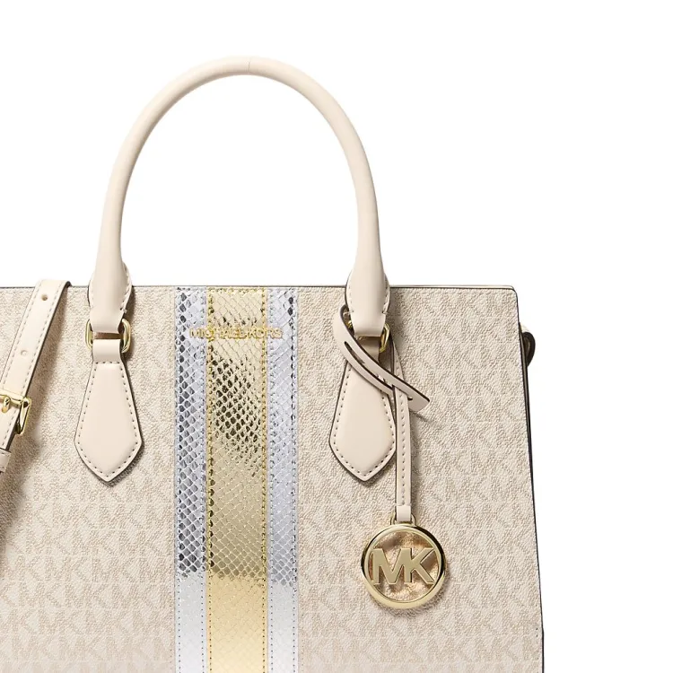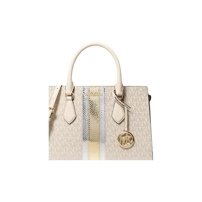 MICHAEL KORS Покрытый холст Сумка через плечо Сумка среднего размера Женская Белая и Золотая