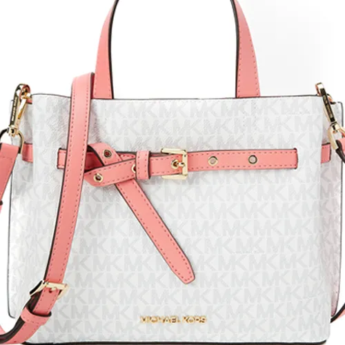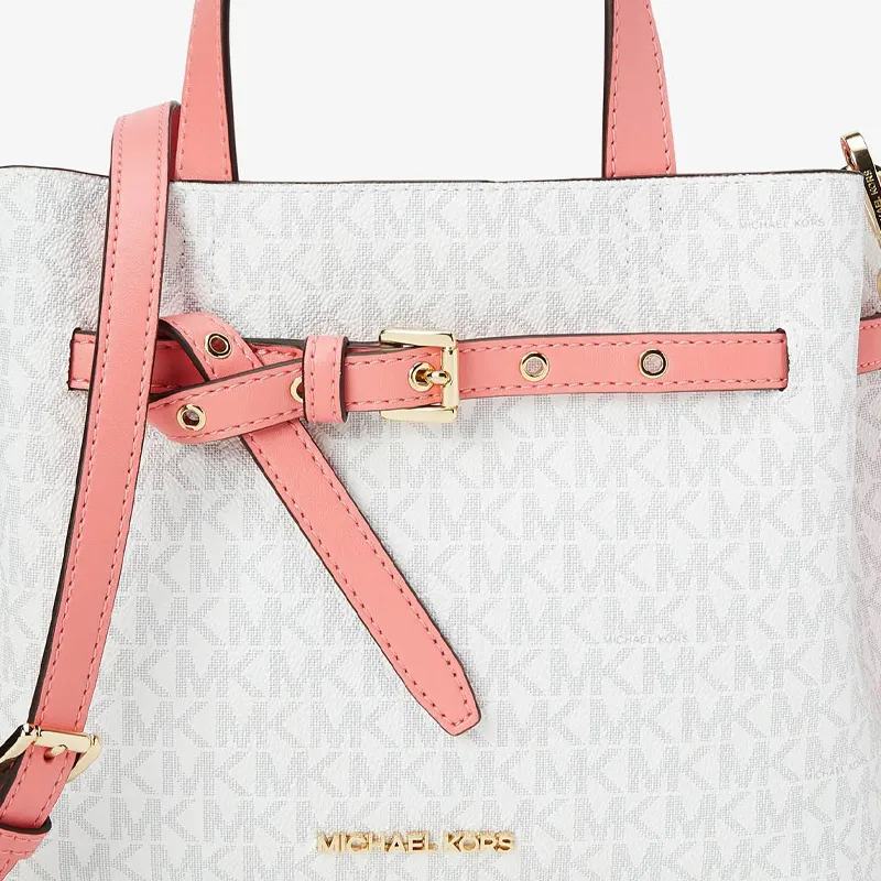 MICHAEL KORS Эмилия Искусственная кожа Квадратная Ручная Сумка Сумка через плечо Маленькая Женская Белая Грейпфрутовый Розовый