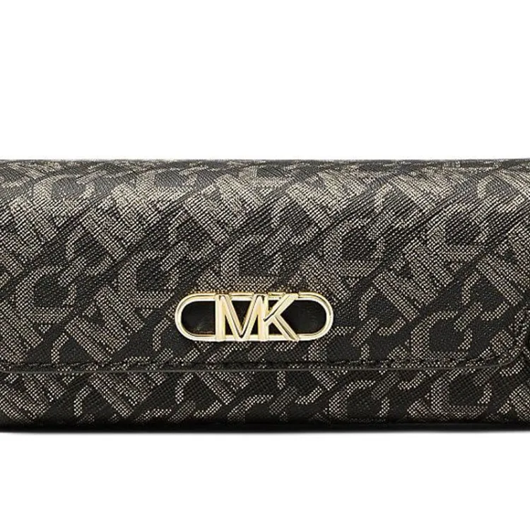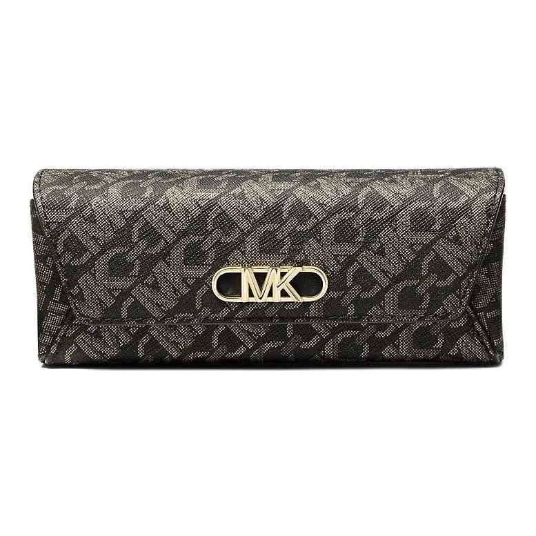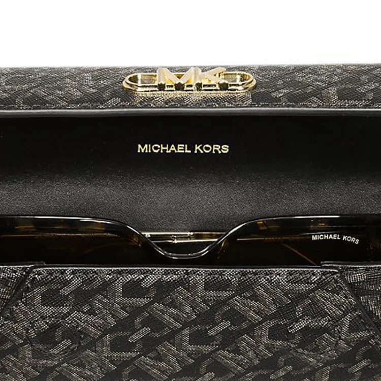 MICHAEL KORS Empire Покрытый холст Чехол для очков Маленький Женский Черный и Светлый Золото