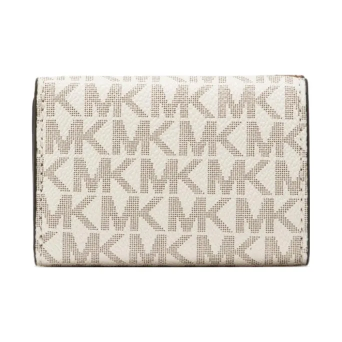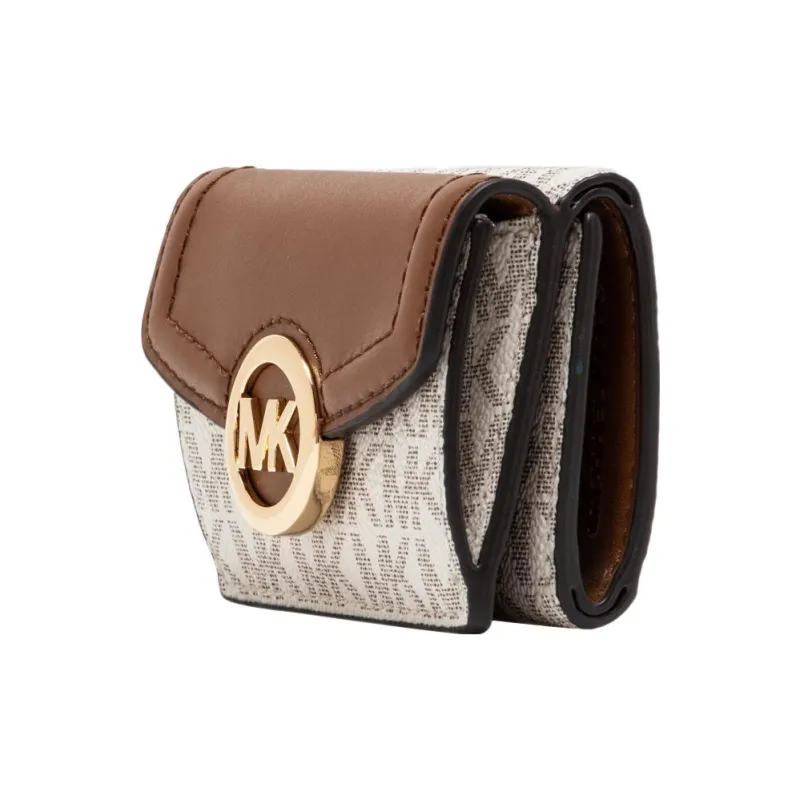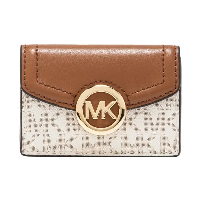 MICHAEL KORS Fulton Покрытый холст Держатель для карт кошелек Экстра Маленький Женский Коричневый и Ванильный Белый