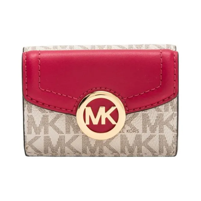 MICHAEL KORS Fulton Покрытый холст Держатель для карт кошелек Экстра Маленький Женский Серый и Фуксия