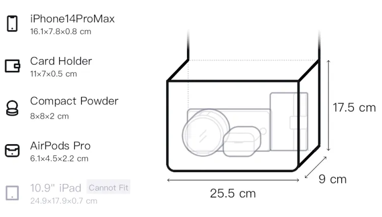Длина (размер в длину): 23/25,5 см, Ширина корпуса: 9 см, Длина корпуса: 17,5 см