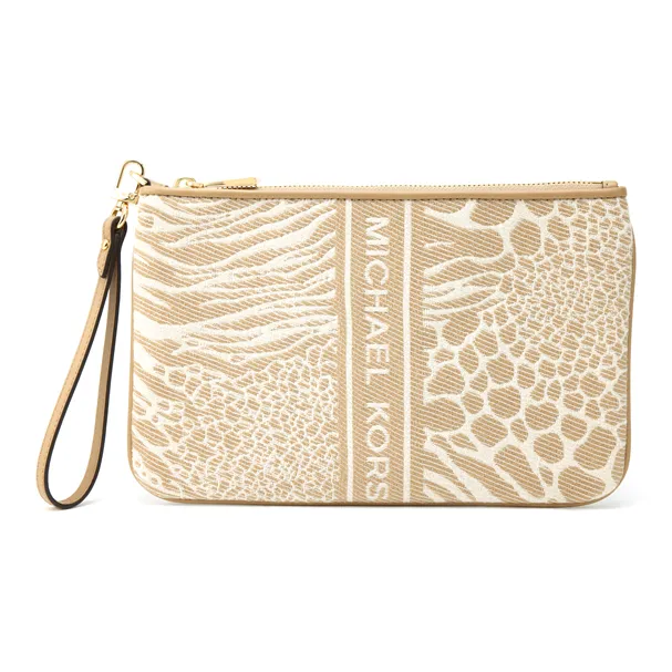 MICHAEL KORS Jet Set Charm Ткань Клатч Большой Женский Светлый Верблюжий Экрю