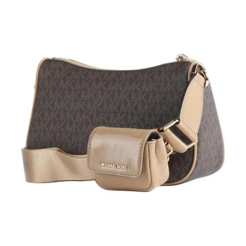 MICHAEL KORS Jet Set Покрытый холст с кожаными вставками Сумка через плечо Средняя Женская Темно-коричневый