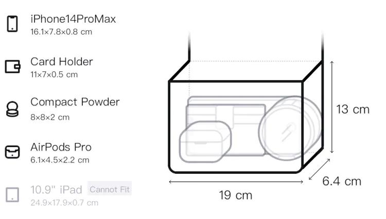 19 см (Длина (размер в длину)) x 6,4 см (Ширина корпуса) x 13 см (Длина корпуса)