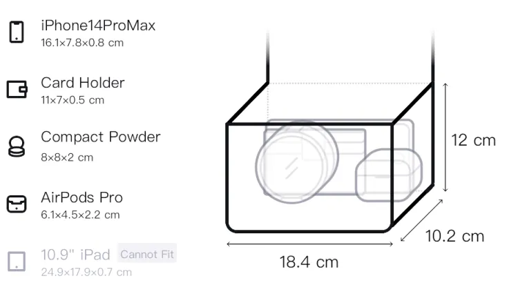 Длина 18,41 см * Ширина 10,16 см * Высота 12 см