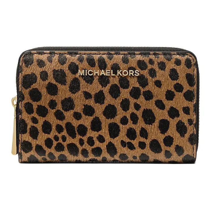 MICHAEL KORS Jet Set Телячья кожа Кошелек Маленький Женские Черный и Леопардовый принт