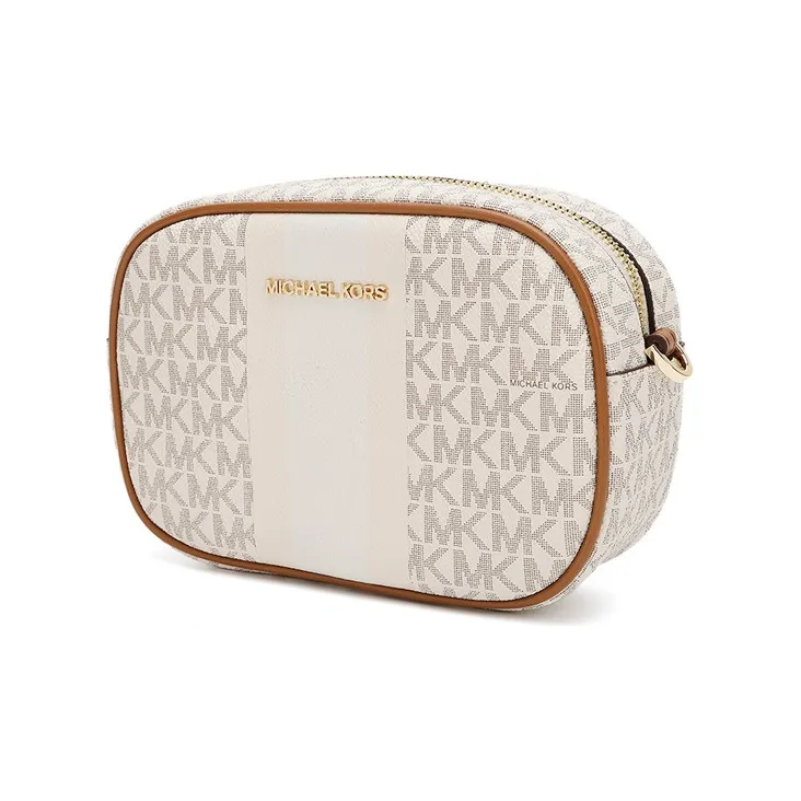 MICHAEL KORS Jet Set Travel PVC с кожаными вставками Camera Сумка Сумка через плечо Маленькая Женская Ванильный Белый