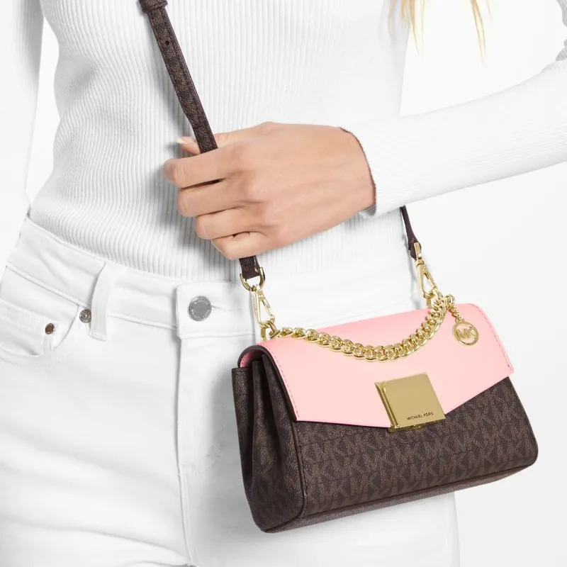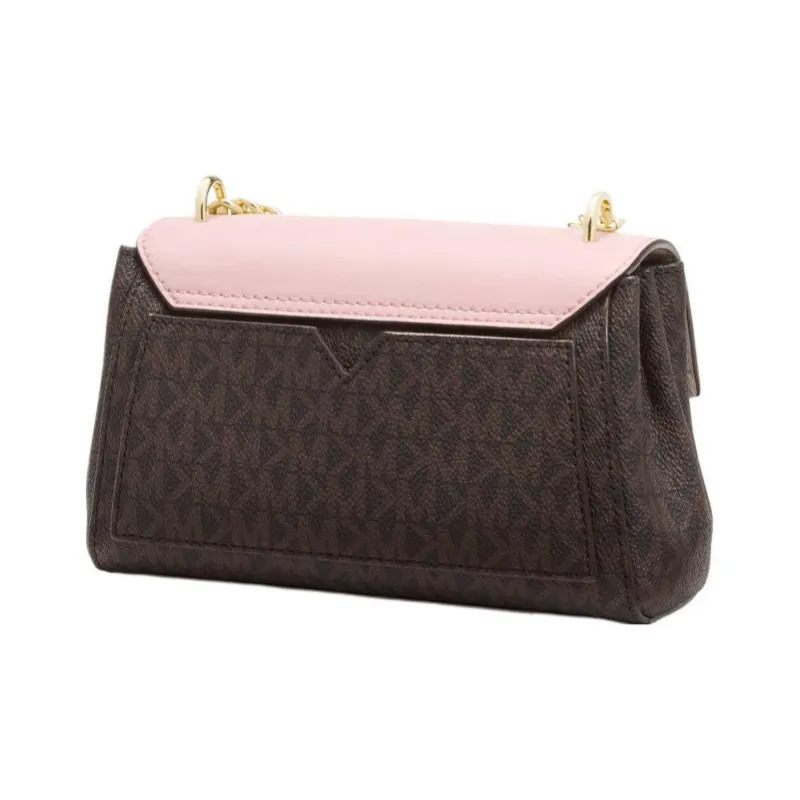 MICHAEL KORS Lita Холст Flap Bag Crossbody Bag Женская Темно-Коричневый и Розовый