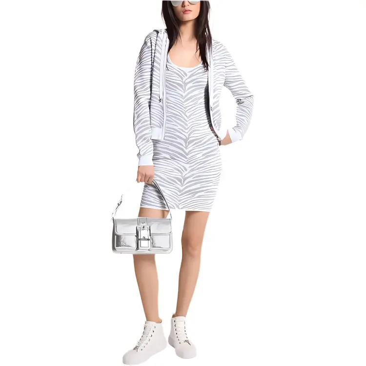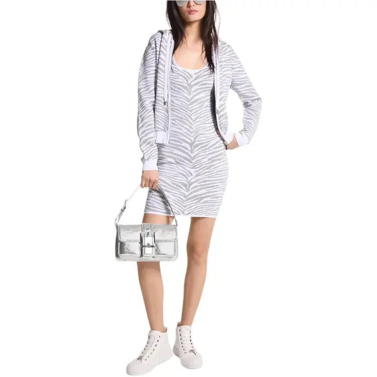MICHAEL KORS Металлик Зебра Жаккард ZIP UP Толстовка Куртки Пальто Женские Серебристый