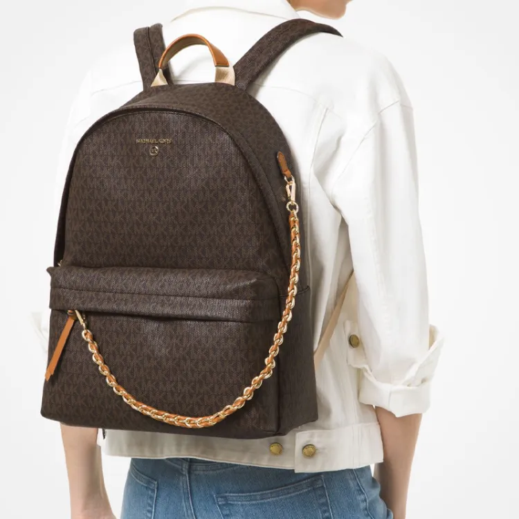 MICHAEL KORS MICHAEL KORS Handbag Collection Slater Холст Хлопок Рюкзак Большой Женский Коричневый