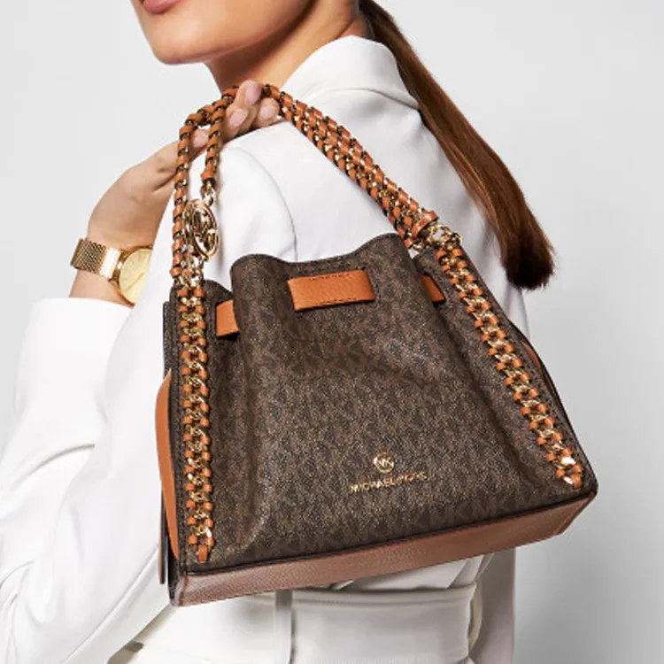 MICHAEL KORS Mina Покрытый холст с кожаными вставками Сумка Сумка через плечо Сумка через плечо Маленькая Женская Желудево-коричневая