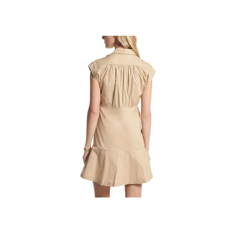 MICHAEL KORS Organic Эластичный хлопок Поплин Платье-рубашка Без рукавов Женское Хаки