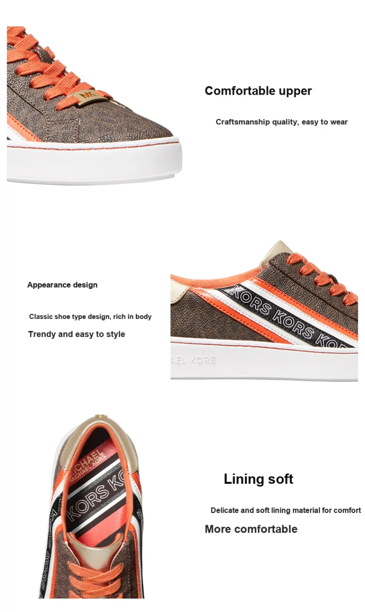 MICHAEL KORS SLADE Низкий Топ Стильный Скейтбординг Женские Темно-коричневый и Оранжевый Красный