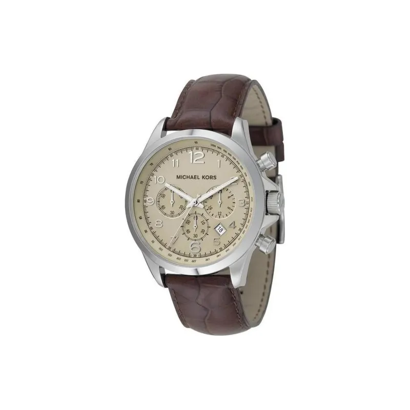MICHAEL KORS Наручные часы Кварцевый механизм Кожаный ремешок 45 мм Бежевый циферблат Часы Мужские часы