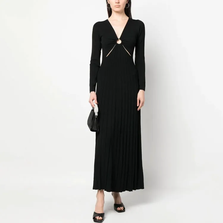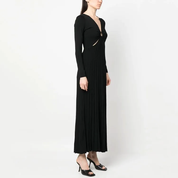 MICHAEL KORS MMK SS23 Длинное платье с длинными рукавами женское черное