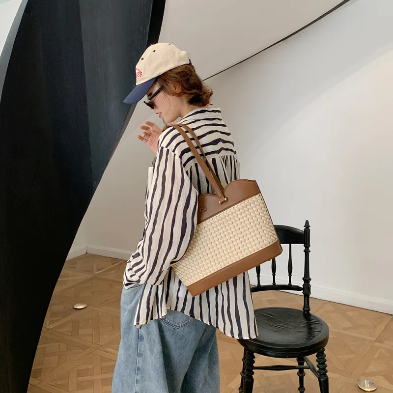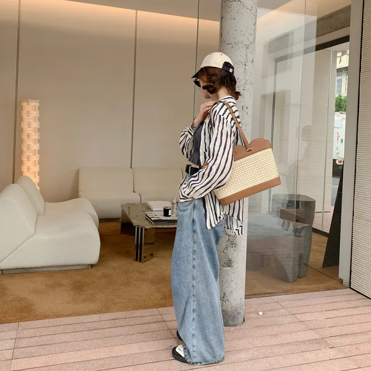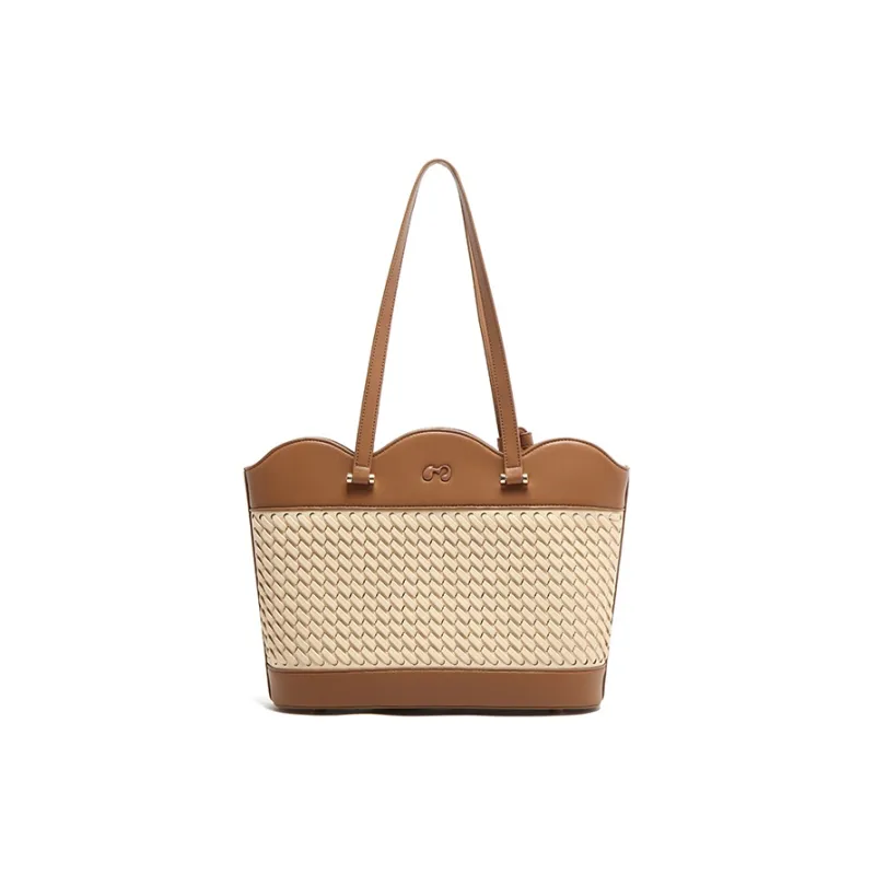 MICOCAH ПУ (полиуретан) Сумка через плечо Большая Женская Тканевая Вязаная Коричневая
