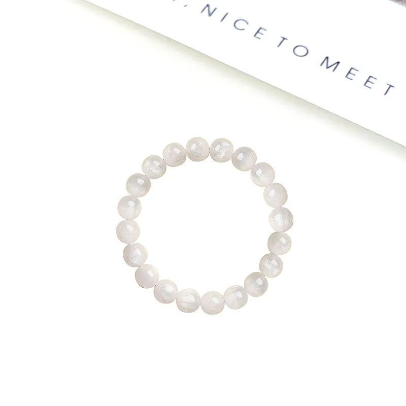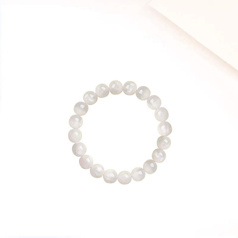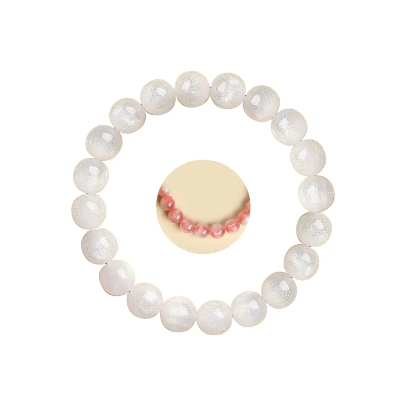 Гелиолит Волшебный Браслет с Бусинами -- [Белый Лунный Свет 1 Пара]