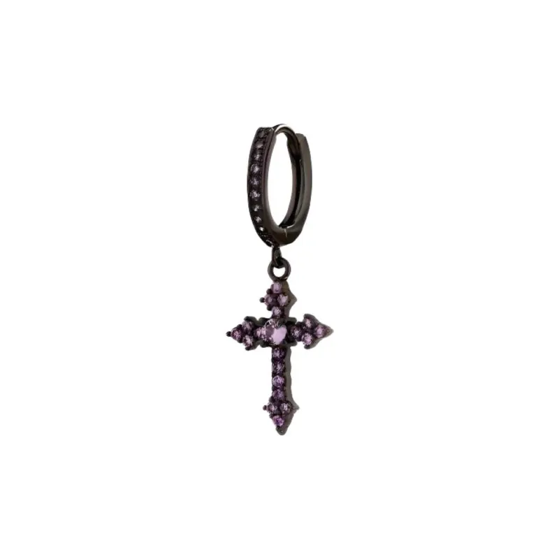 Стиль:Сверкающие Черные Фиолетовые Серьги-кольца с ромбовидным крестом [Одиночный]
