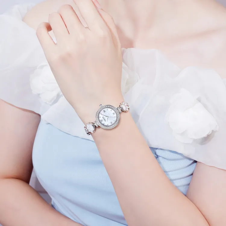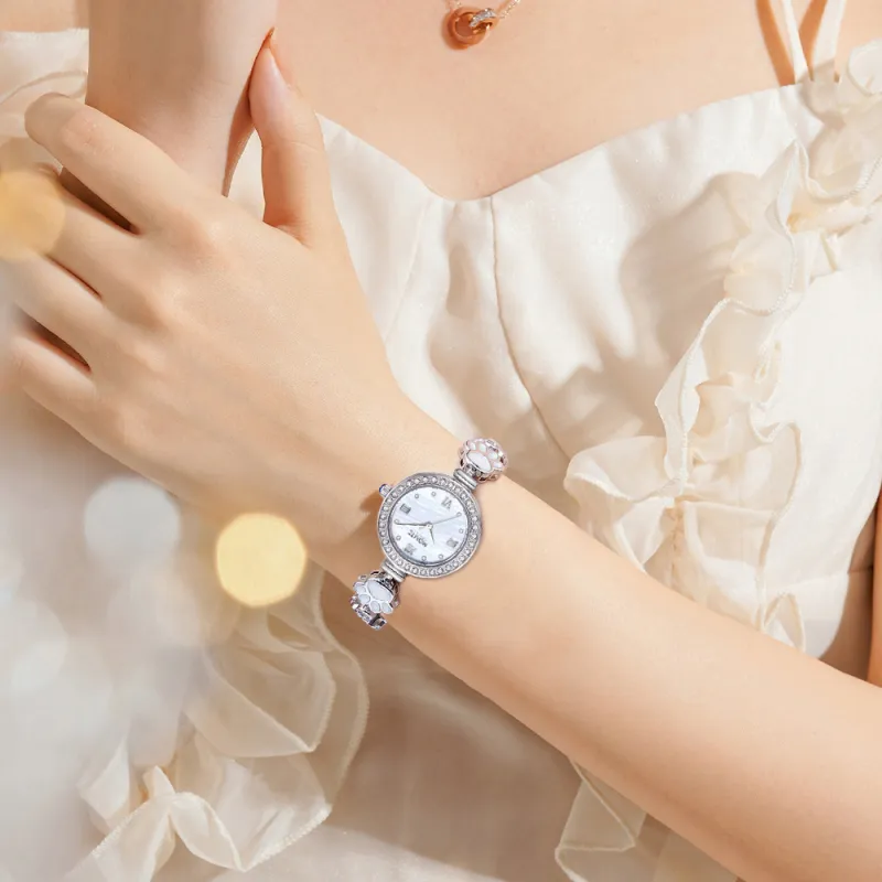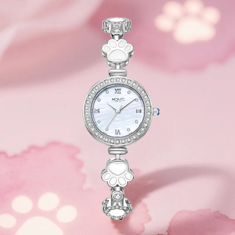 Midnite Star Meow Стиль Цветочный принт Украшенный стразами Браслет-часы Кварцевый механизм Ремешок из сплава Часы