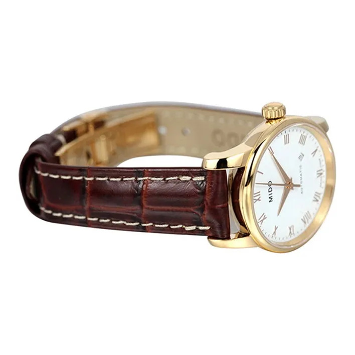 MIDO Baroncelli Автоматический Механический Часы Мужские Циферблат 38 мм Белый Нержавеющая Сталь Корпус Кожаный Ремешок